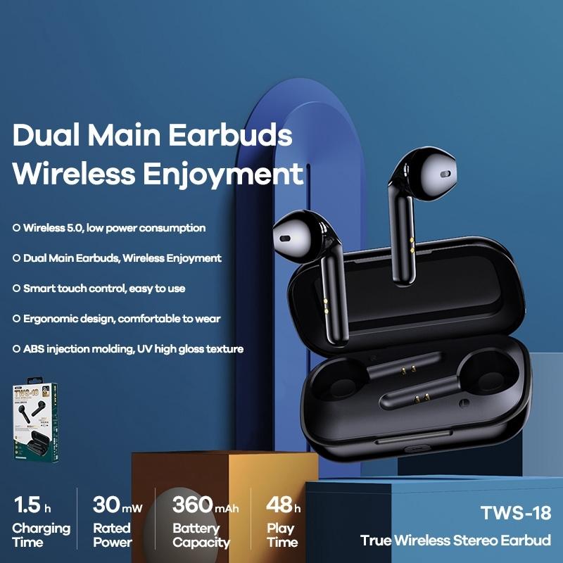 True Wireless Stereo Bluetooth 5.0 Earphones Tws 18 Black Earbuds