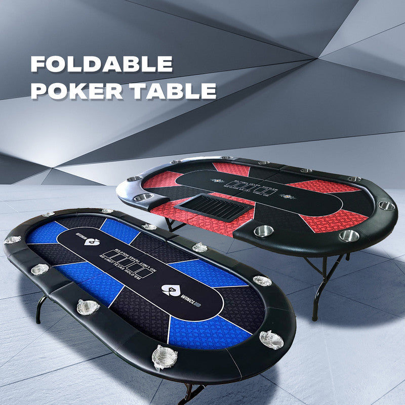 10 Player Foldable Red Color Poker Table Blackjack Texas Holdem With Cup Holders Card Tables