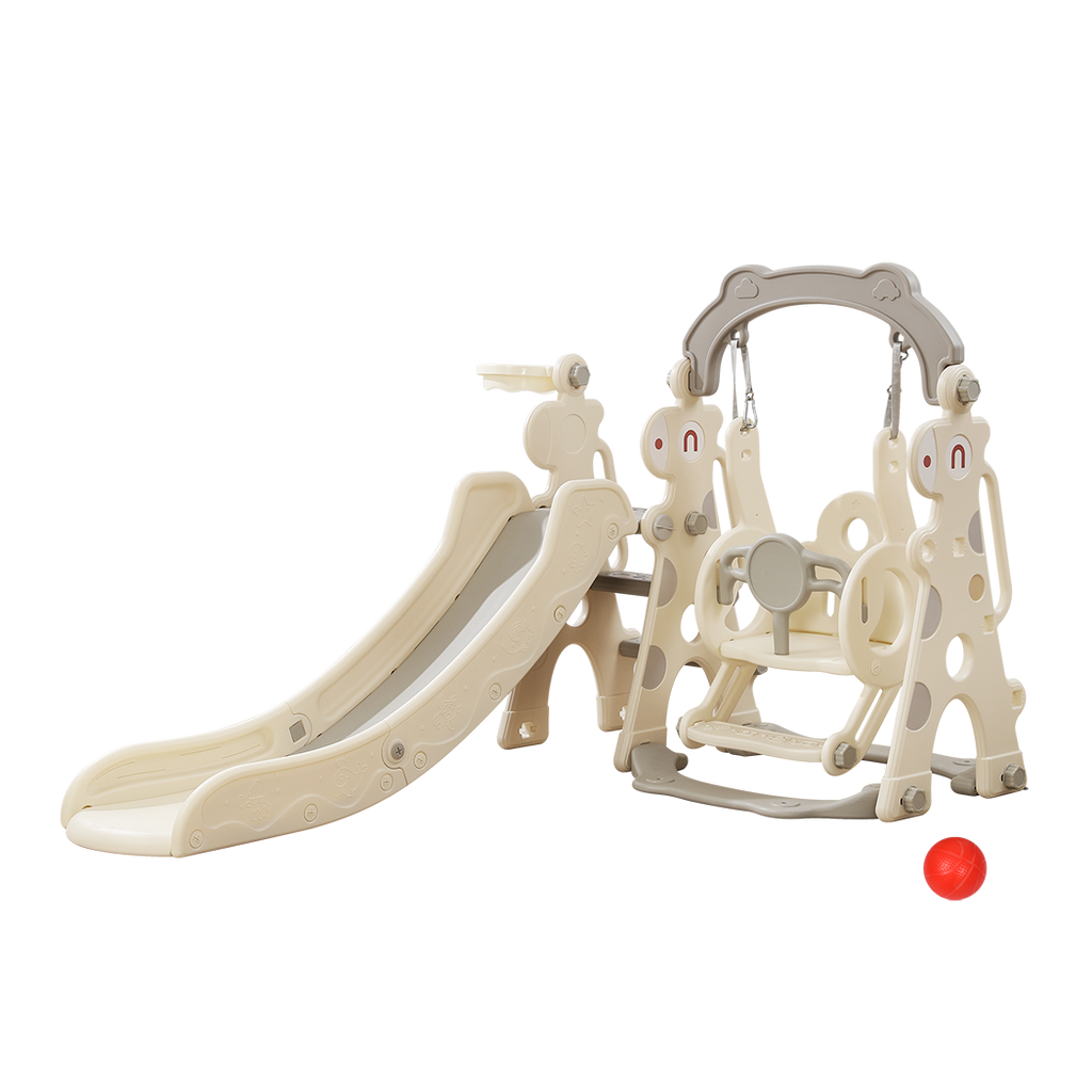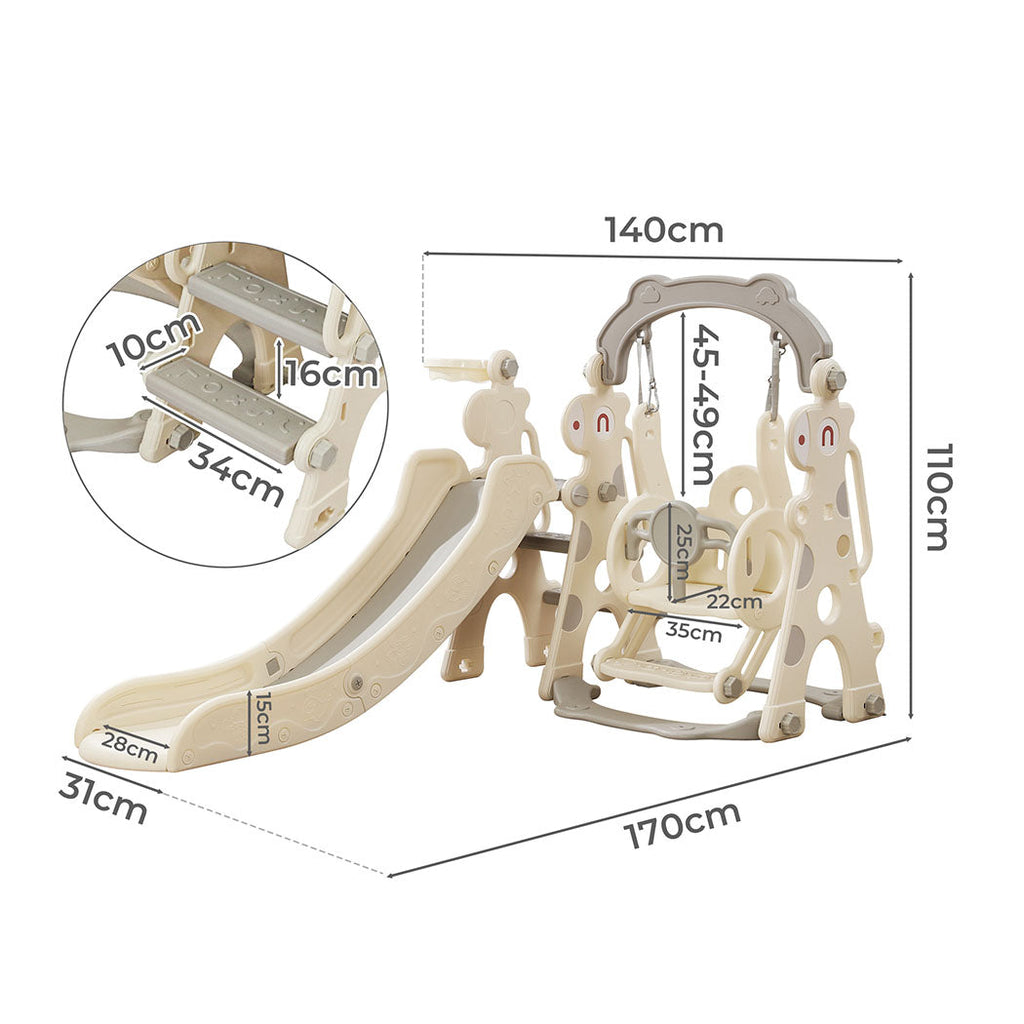 - 4-In-1 Play Centre Includes A Slide Swing Basketball Hoop And Climbing Stairs For Endless Fun.