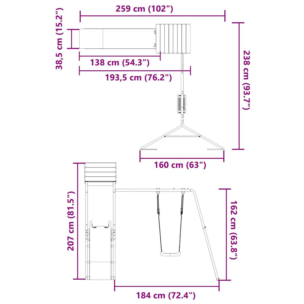 Do You Want To Give Your Children The To Play At Home This Outdoor Playset Transforms Your Backyard Into A Playground For Imaginative Adventures! Durable Material: This Playhouse Is Made Of Solid Douglas Wood. Solid Douglas Wood Is A Highly Durable Wood That Works Well For Outdoors. Douglas Wood Is Also Strong Enough To Work With Minimum Care Even Under The Influence Of The Weather. Sturdy And Stable Frame: The Frame Ensures Sturdiness And Stability. In Addition The "A" Shaped Legs Of The Children's Swing Allow For Balance. Multi-Activity Centres: The Climbing Frame Features A 90 Cm Height Platform And Stands Out With Its Wave Slide A Single Swing Set As Well As A Sandpit. Your Little Ones Can Also Invite Their Friends To Join The Fun. Thoughtful Design: The Surrounding Railings Are Designed To Ensure The Safety Of Children During Their Happy Play. Also The Roof Provides Shade For Your Children On Hot Summer Days. Endless Fun: This Fun-Filled Outdoor Playhouse Is The Perfect Way For Your Child And Their Friends To Enjoy Entertainment Have More Interactive Time And Make Memories For You And Your Children! Warning:Only For Domestic Use outdoor Use Not Suitable For Children Under 3 Years Recommend User Age: 3-8 Years Old Maximum Per User Weight: 45 Kg Note:The Product Shall Be Anchored In Order To Reduce tipping Hazards. The Anchors Are Sold Separately. Good To Know:To Make Assembly As Easy As Possible Each Product Is Delivered With A Manual.