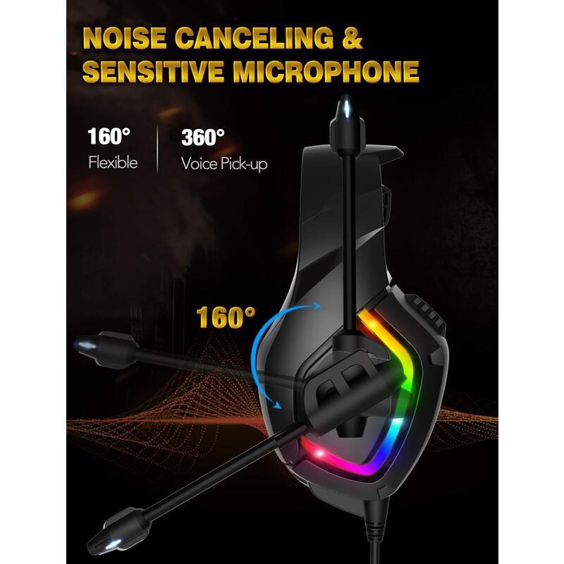[Soundproof Microphone] The Computer Gaming Headset Is Equipped With An Ergonomically Designed 160 Degree Rotating Noise Reduction Microphone. Since The Environmental Noise Is Minimized Your Sound Picks Up 360 Degrees. You Can Hear It In A Relatively Noisy Environment Without Having To Repeat Yourself.