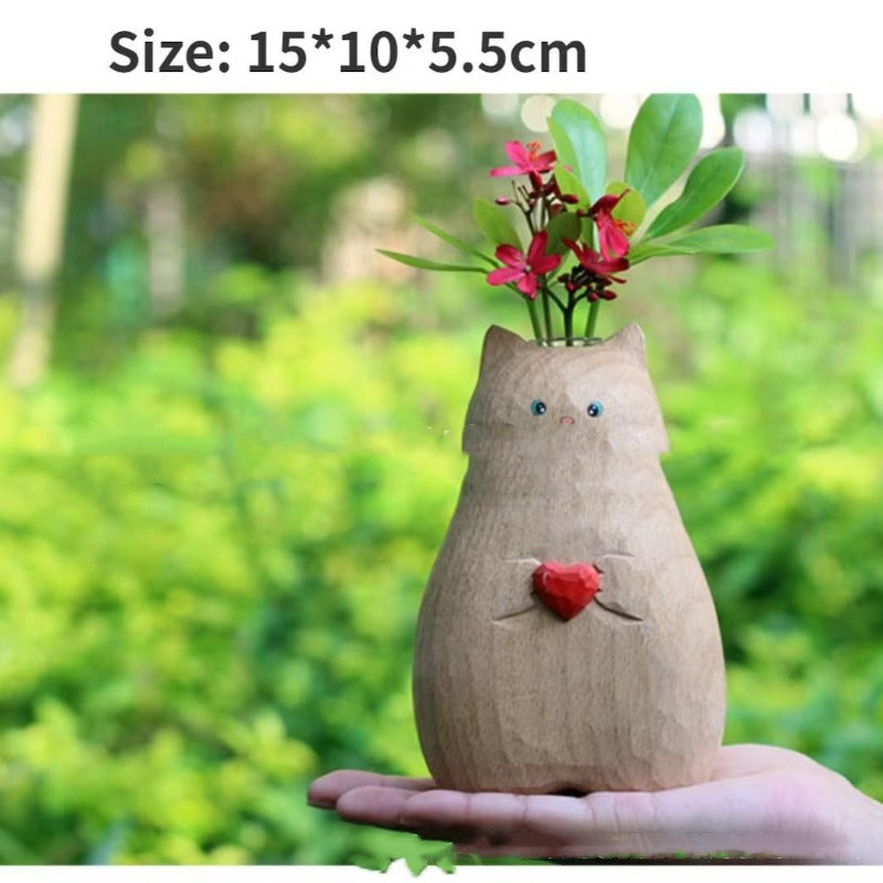 Vases Creative Heart Cat Vase Handmade Christmas Wooden Love Log Crafts