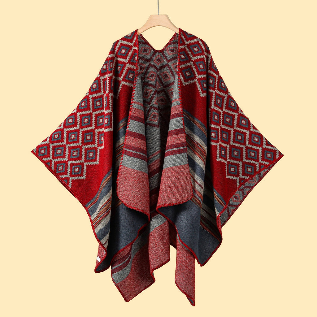 Upgrade Your Autumn And Winter Wardrobe With This Elegant Autumn Winter Shawl. Crafted From A Premium 50% Acrylic And 50% Polyester Blend This Knit Cloak Offers A Soft Cozy Feel Reminiscent Of Cashmere Ideal For Chilly Days. Featuring An Artistic Oil Painting-Inspired Design And A Stylish Split-Front It Serves As A Versatile Outer Layer For Travel Casual Outings Or Special Occasions. Its Lightweight Yet Durable Construction Ensures Both Comfort And Longevity.