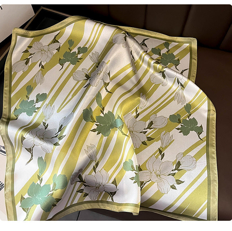 Green Flowers 53Cm Silk Scarf 100% Mulberry Floral Print Women's Square Shawl (Style 2) Scarves & Wraps