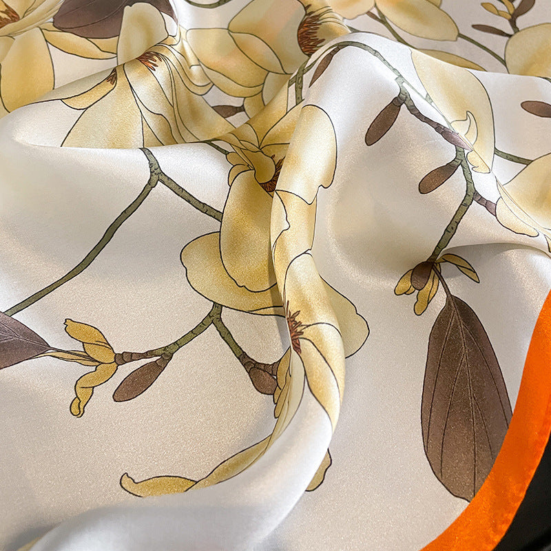Luxurious 100% Mulberry Silk Scarf – 53Cm Square Floral Print