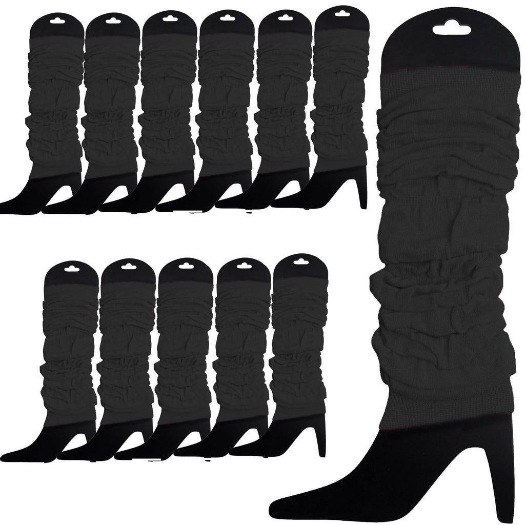 12 Knitted Womens Neon Party Ankle Fluro Dance Costume 80S Bulk Black Leg Warmers