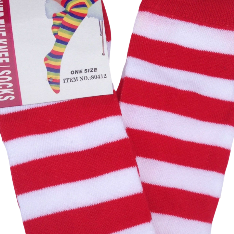 Br Costumes Over The Knee Plain Striped High Thigh Ladies Long Womens Stripey Stocking Red White Socks