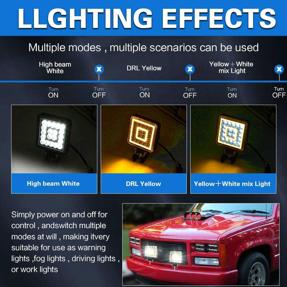 1 Pair 4 Inch Square Double Circle Angel Eye Work Light Black Led Car Lights