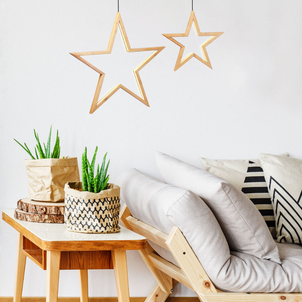 The Small Star Led Hanging Lamp Measures Approximately 30 X 32 X 3 Cm (H X W X D) Making It A Perfect Fit For Various Room Sizes. Its Size And Design Provide A Balanced Blend Of Subtlety And Statement-Making Style. The Bamboo Material Not Only Adds An Element Of Sustainable Beauty But Also Contributes To The Lamp's Overall Robustness.