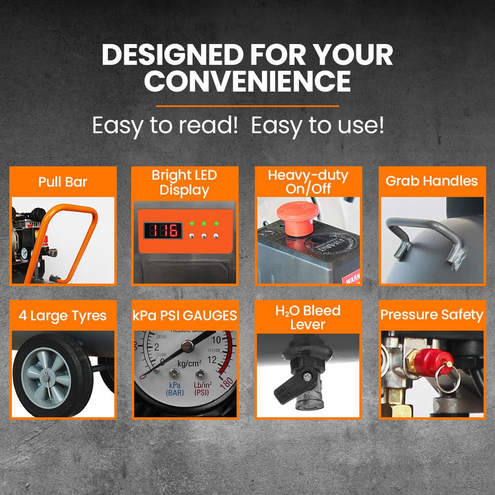 • 100L Air Tank Capacity - Work Uninterrupted For Longer Periods.
