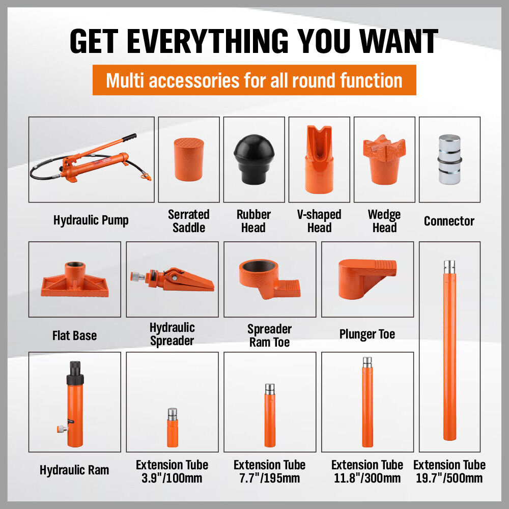 Perfect For All Your Needs: The Hydraulic Ram Kit Includes Everything You Need To Complete Your Repair Work! Hydraulic Pump Hydraulic Ram 4Pcs Extension Tubes Serrated Saddle Rubber Head V-Shaped Head Wedge Head Connector Flat Base Hydraulic Spreader Spreader Ram Toe Plunger Toe. You Will Be Ready To Take On Any Project Without Breaking A Sweat.