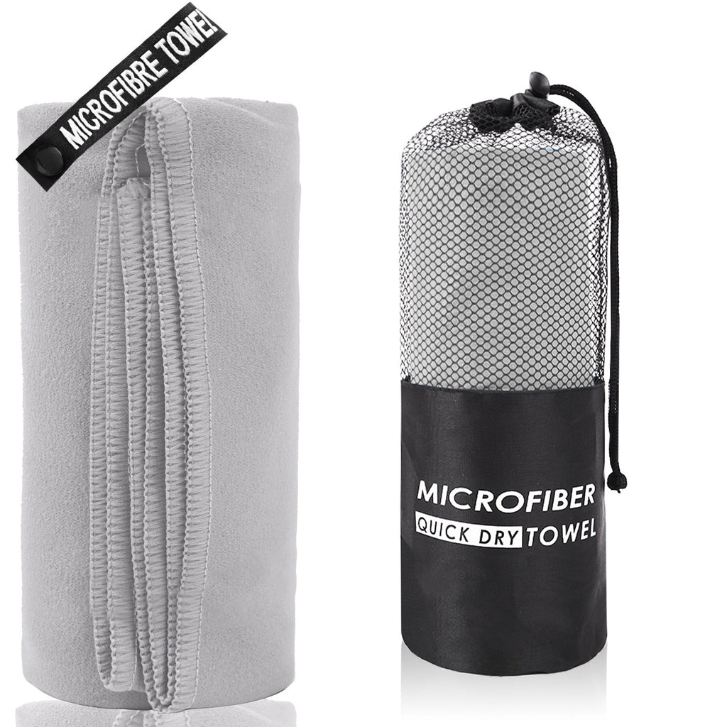 2 Piece Light Grey Quick Dry Microfiber Sports Towel With Travel Case Compact & Absorbent For Gym Swimming Camping Towels & Washcloths
