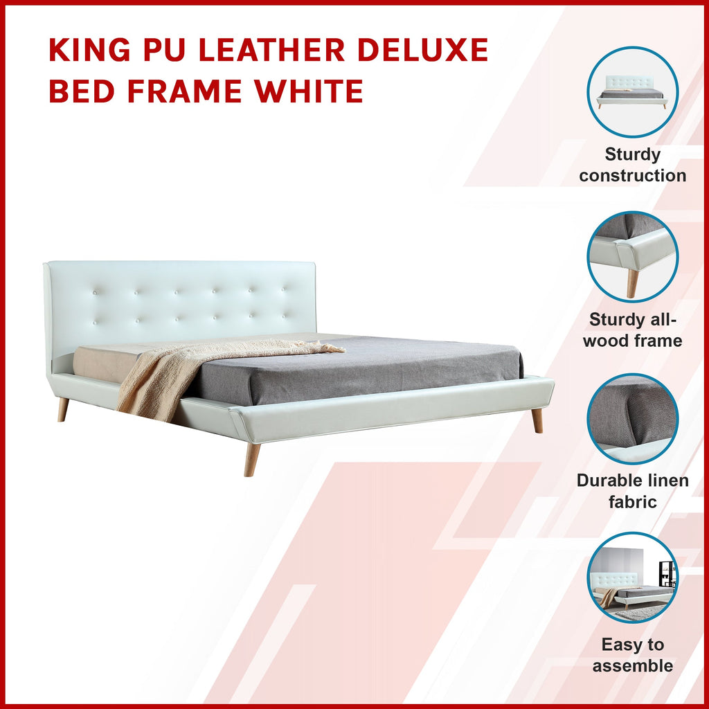 King Pu Leather Deluxe Bed Frame White King Bed Frames
