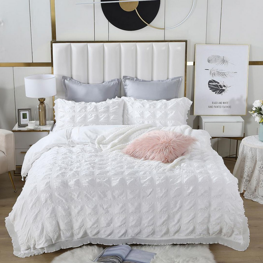 Fabric Fantastic Ruffles Textured White Duvet Quilt Cover Set Quilt Covers