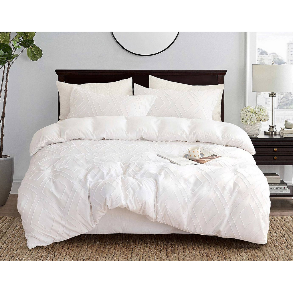 Fabric Fantastic Tufted Diamond White Duvet Quilt Cover Set Quilt Covers