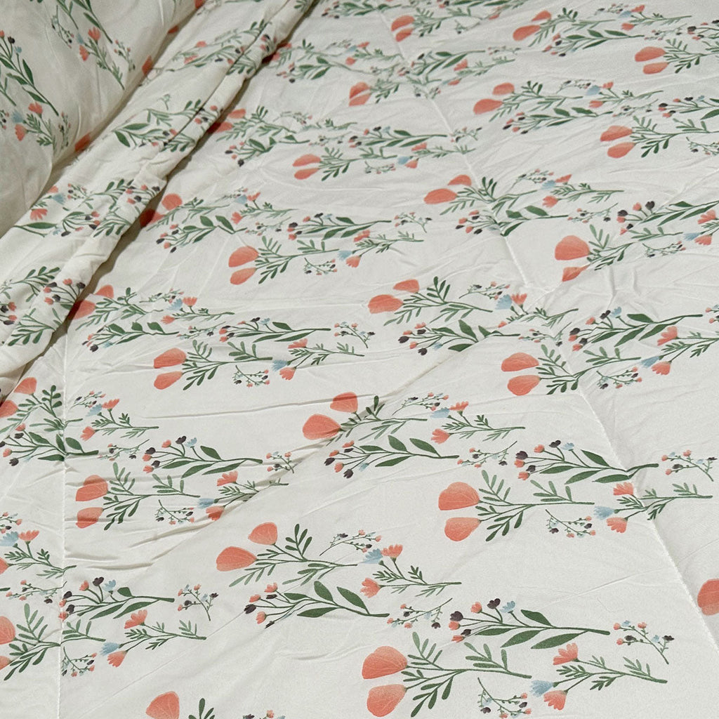 The 3 Pce Light Weight Microfiber Comforter Set Corbett Gardens Queen/King by Hotel Living is a set that will brighten up your bedroom with its floral patterns. Light-weight. Microfiber face fabric with peach skin feel. Approx 200gsm -220 gsm polyester filling. The pillowcase patterns are randomly cut from the matching comforter face fabric. Comforters are quilted Should there be any minor imperfect prints. An option flip it over as other side has the same prints is fully reversible!