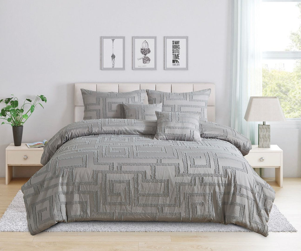 Tufted Jacquard Quilt/Doona/Duvet Cover Set Grey Super King Size Super King Doonas