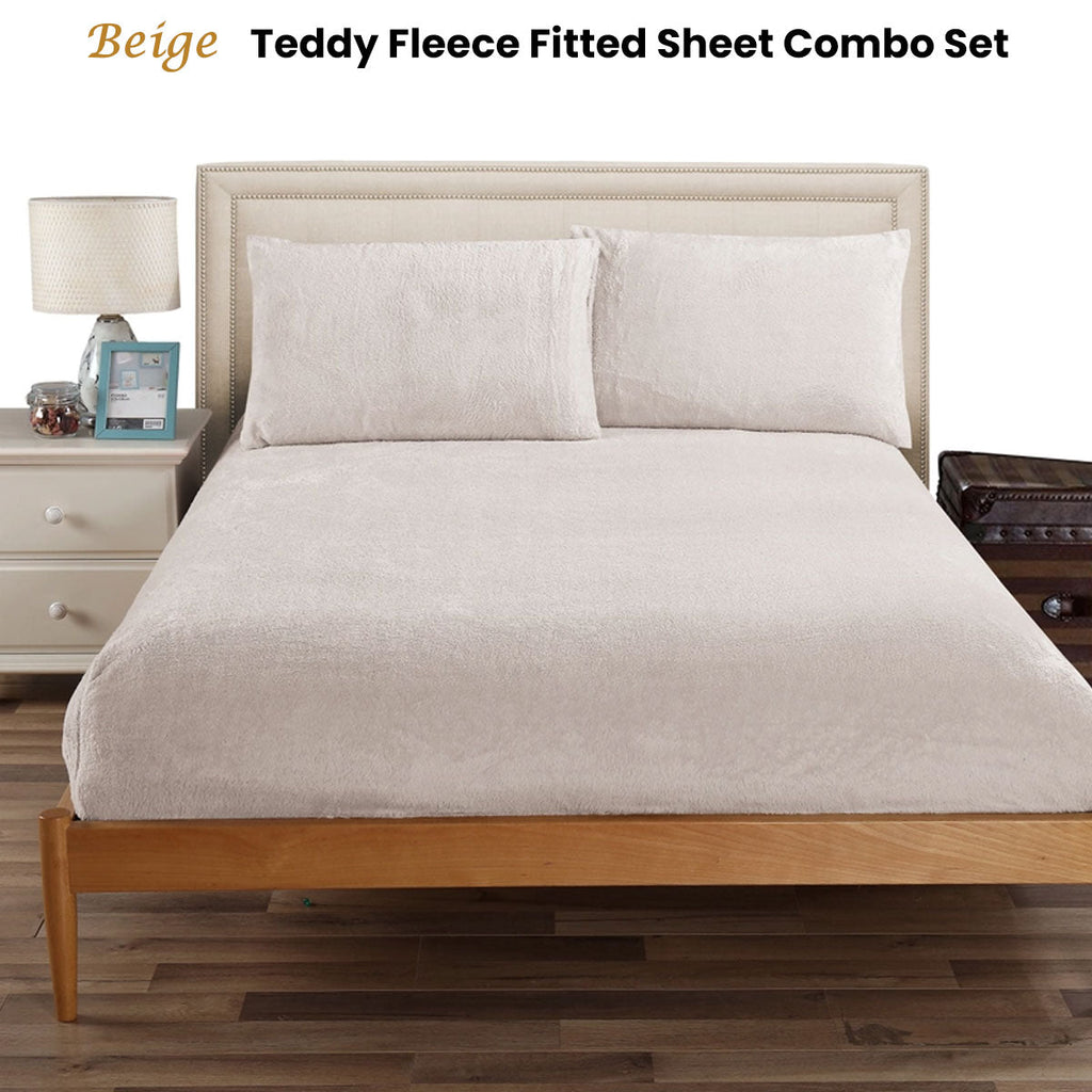 Ramesses Teddy Fleece Fitted Sheet Combo Set Beige King Sheets