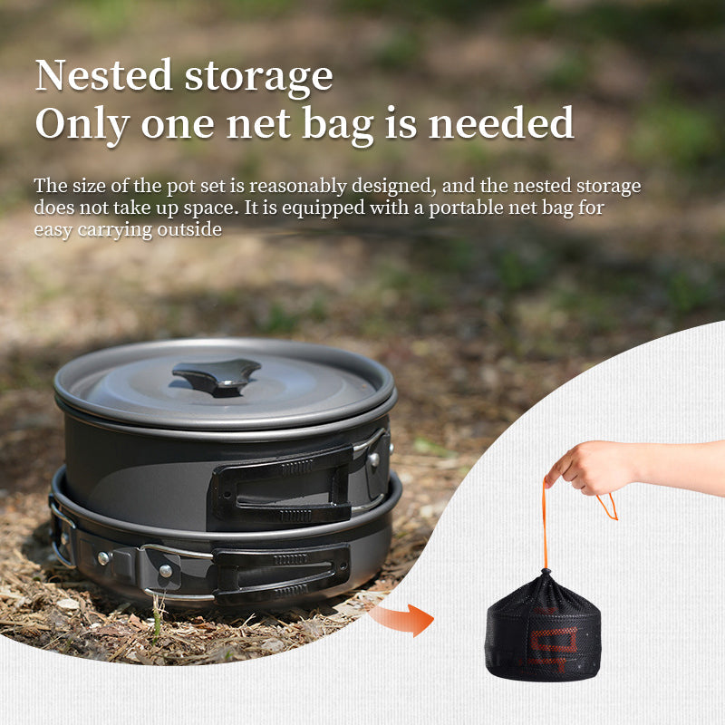 1 3 Person Set: Light Portable Pot & Pan In Carrying Bag Ideal For Outdoor Trips Camping Cookware