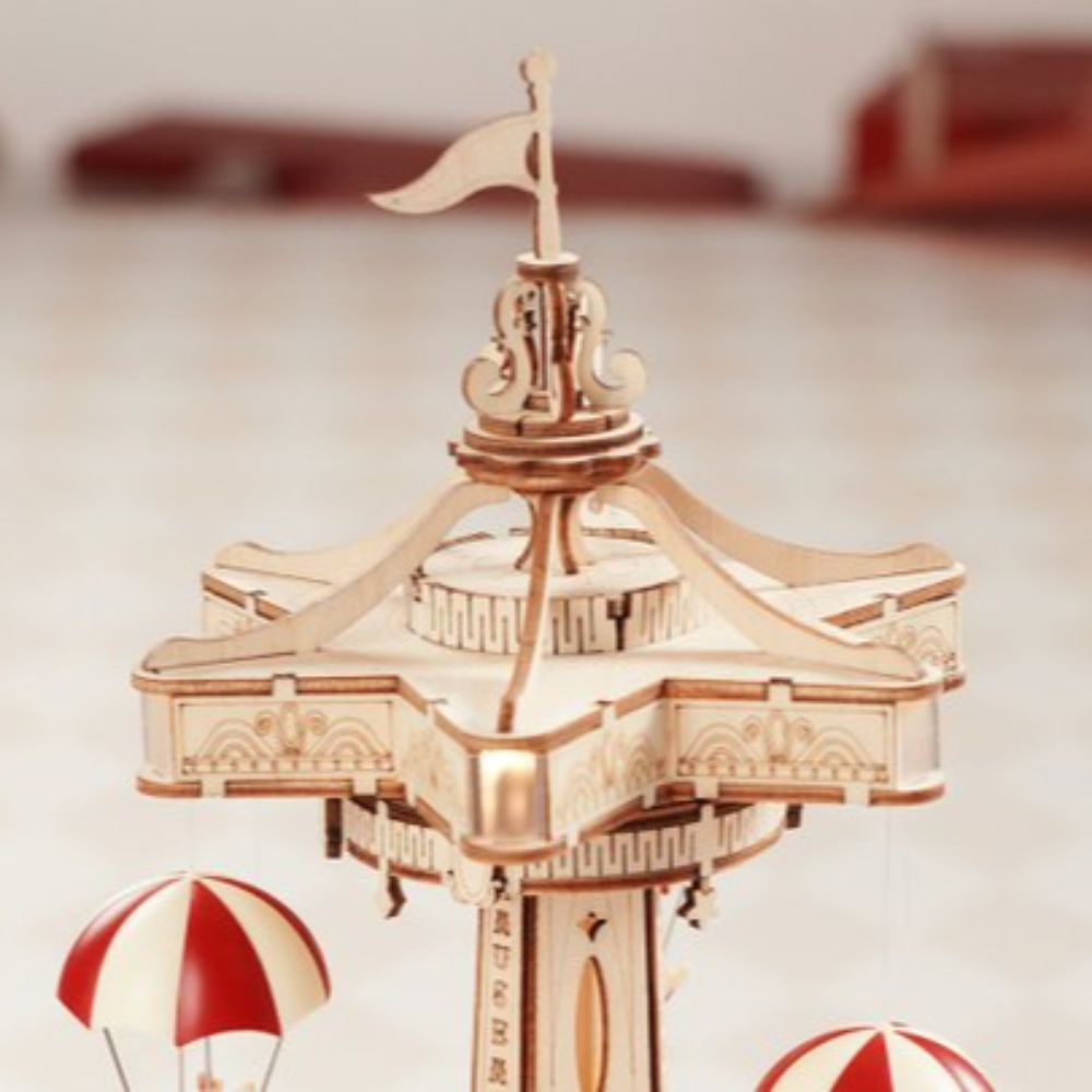 - 1 X Robotime Rokr Parachute Tower Diy Music Box Moveable Amusement Park 3D Puzzle
