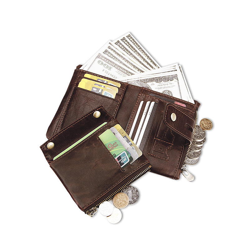 Upgrade your everyday essentials with this stylish and durable tri-fold wallet. Made from premium first-layer cowhide leather this wallet combines timeless design with exceptional functionality for both men and women.