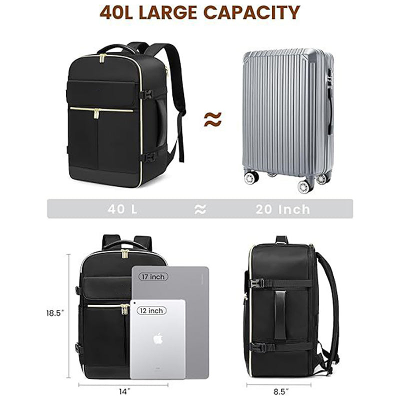 Elosung Black 40L Large Capacity Travel Business Backpack With Expandable Compartments Including 2 Toiletry Shoe Durable Oxford Fabric Bags
