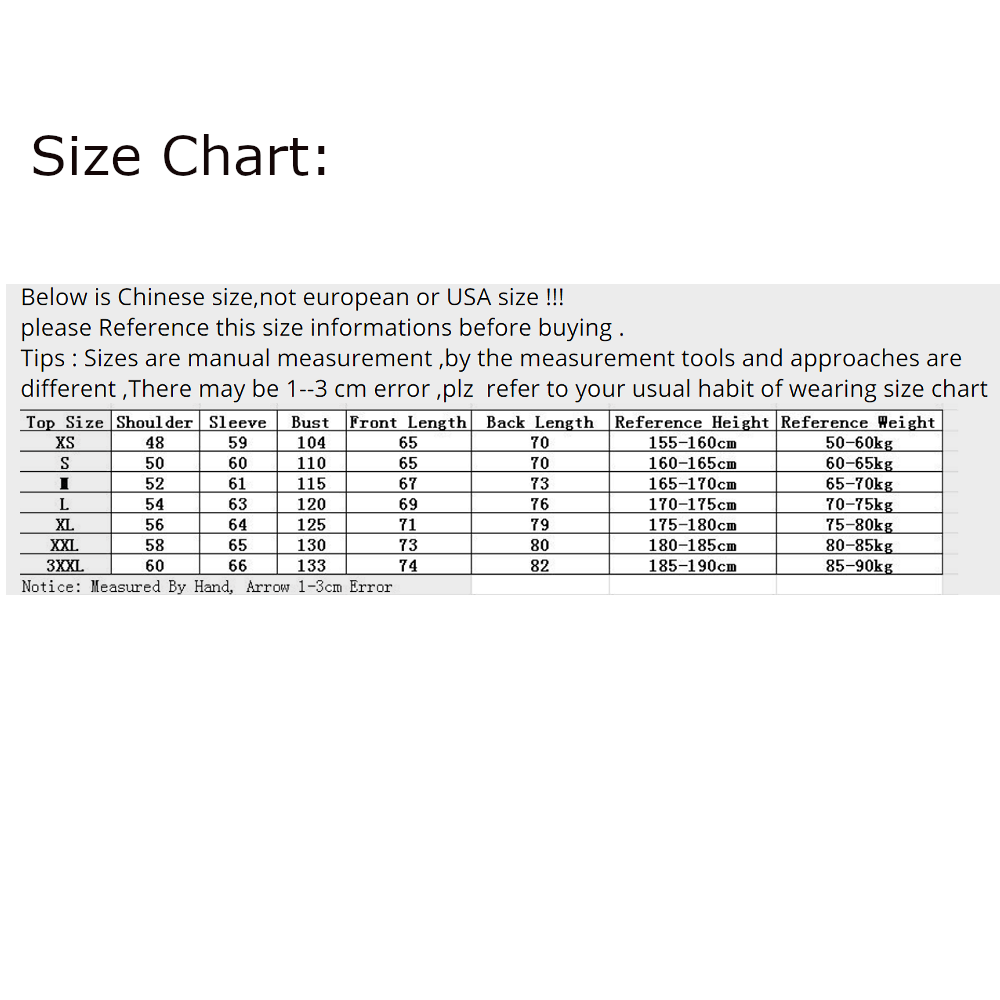 • Size: S M L XL 2XL 3XL (sees size chart iamge)