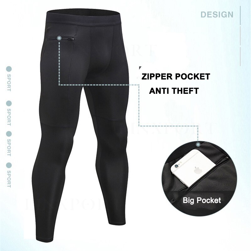 Men's Compression Pants Pocket Baselayer Cool Dry Ankle Leggings Active Tights Compression & Base Layers
