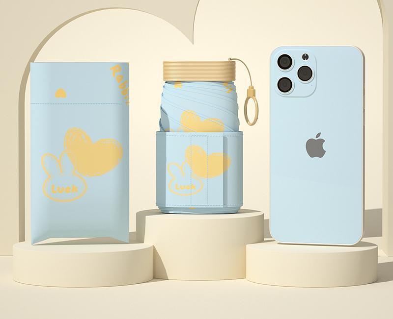 Ultra-Compact 7-Fold Folding Umbrella - Upf50+ Sun Protection Clip Design (Light Blue)