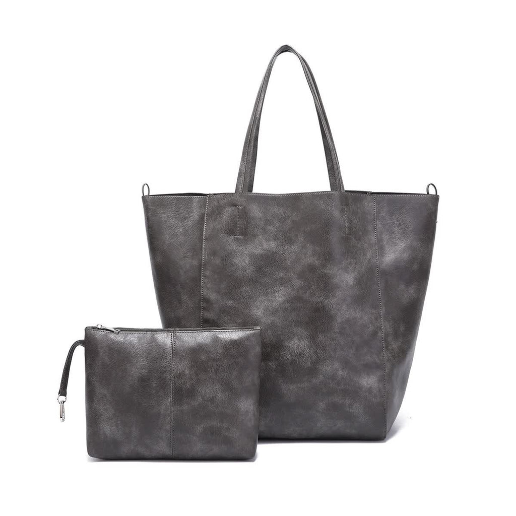 Elosung Grey Classic Large Pu Leather Tote Bag With Inner Pouch Elegant And Functional Women's Bags & Handbags
