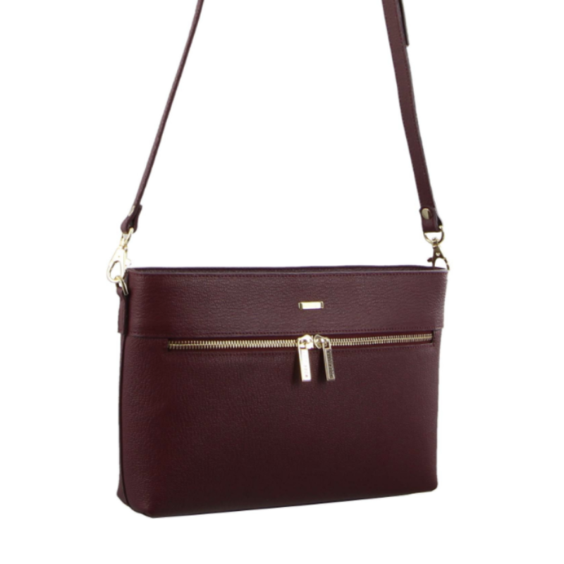Morrissey Italian Structured Leather Cross Body Handbag Wine For Women Fashion Women's Bags & Handbags