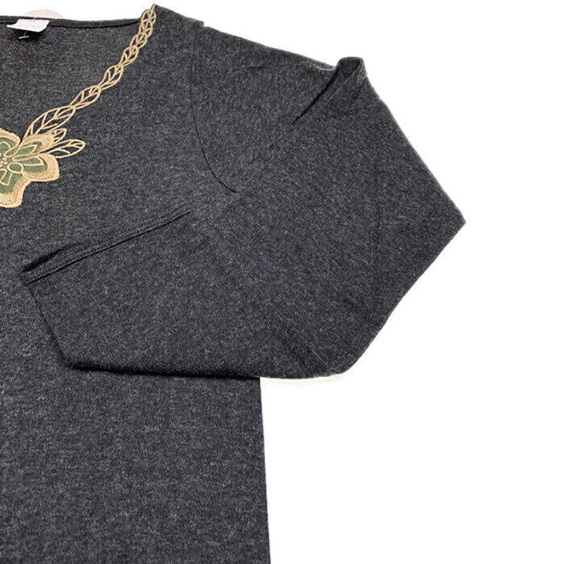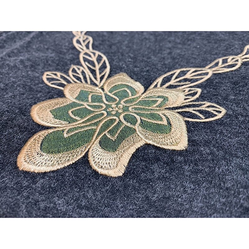 - Beautiful Floral Embroidered Pattern On The Front V-Neck