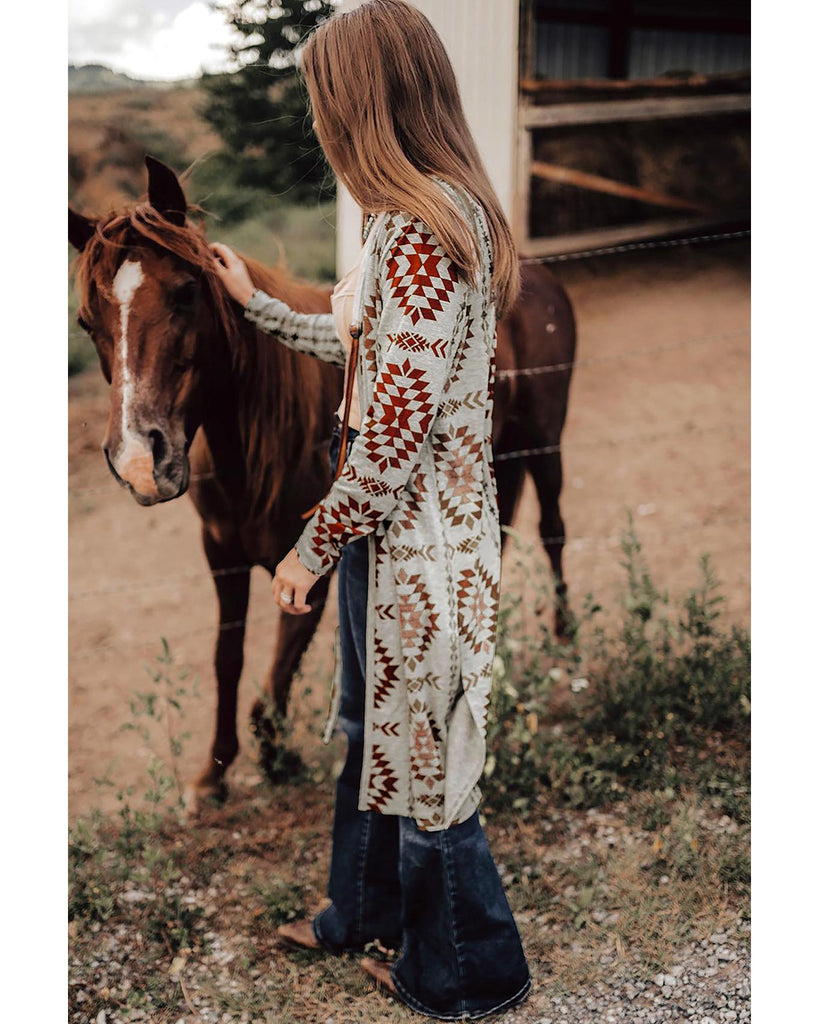 Women's Western-Inspired Aztec Open-Front Top