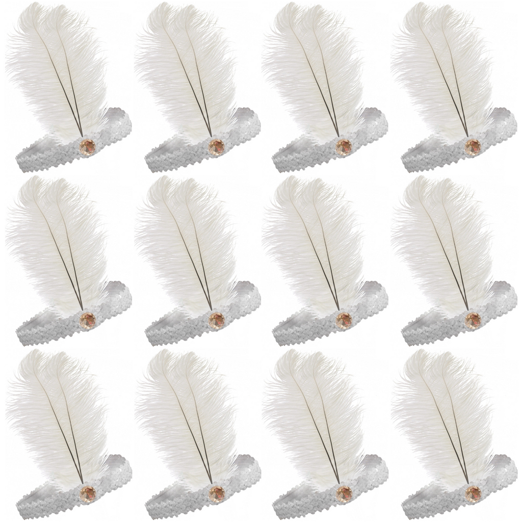 Br Costumes 12X 1920S Flapper Headband Headpiece With Feather & Sequin For Charleston Gatsby Party White Headbands