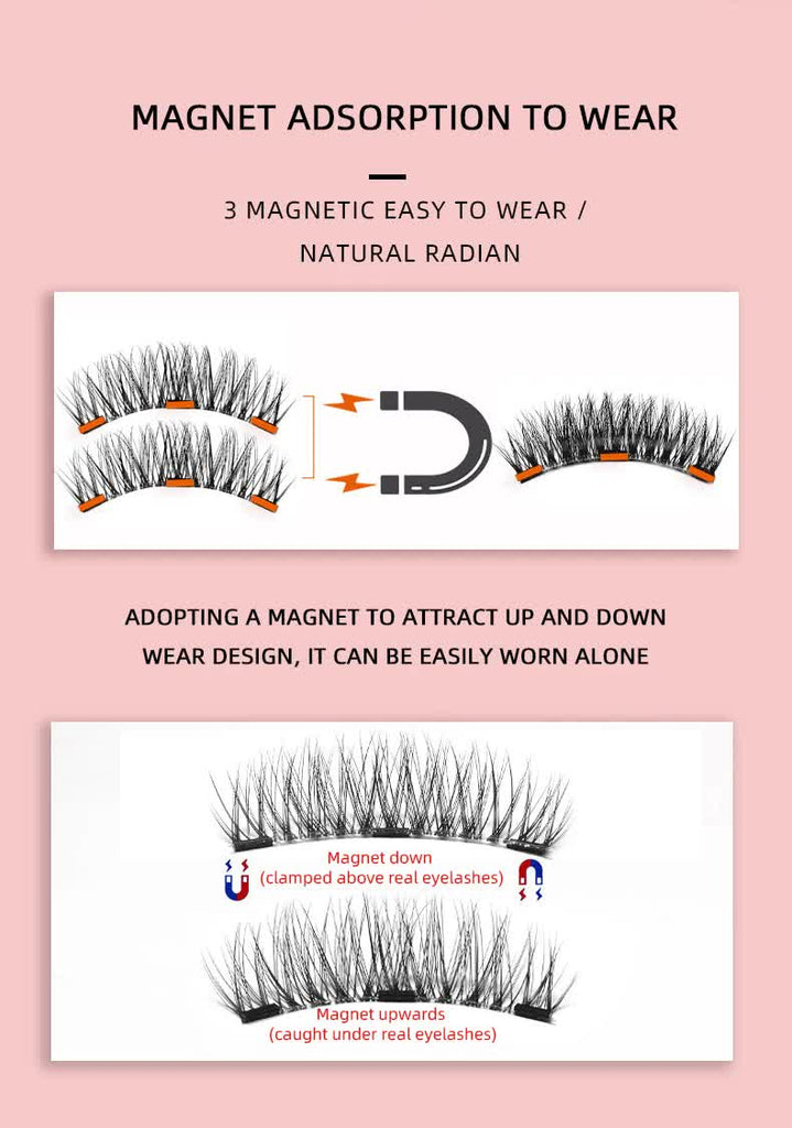 - Kit Includes: 3 Pairs Of Magnetic Eyelashes 1 Applicator Clip 1 Storage Case With Mirror