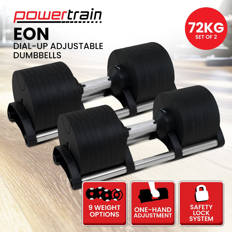 Powertrain Eon Set Of Two Dial Up 36Kg Dumbbell Home Gym 9 Options Dumbbells