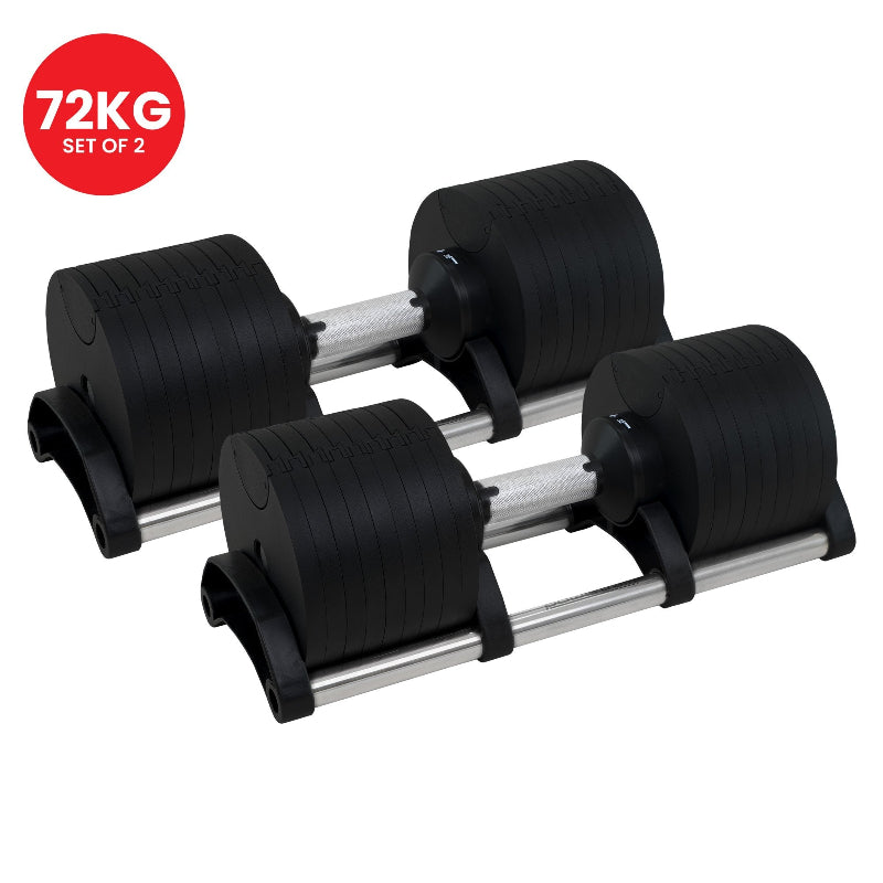 Take Your Strength Training To The Next Level With This Set Of Two Dumbbells. Each Dumbbell Allows You To Effortlessly Switch Between Weights Ranging From 4Kg To 36Kg In Precise 4Kg Increments. Thanks To The One-Hand Adjustment Handle Transitioning Between Exercises Is Seamless And Efficient.