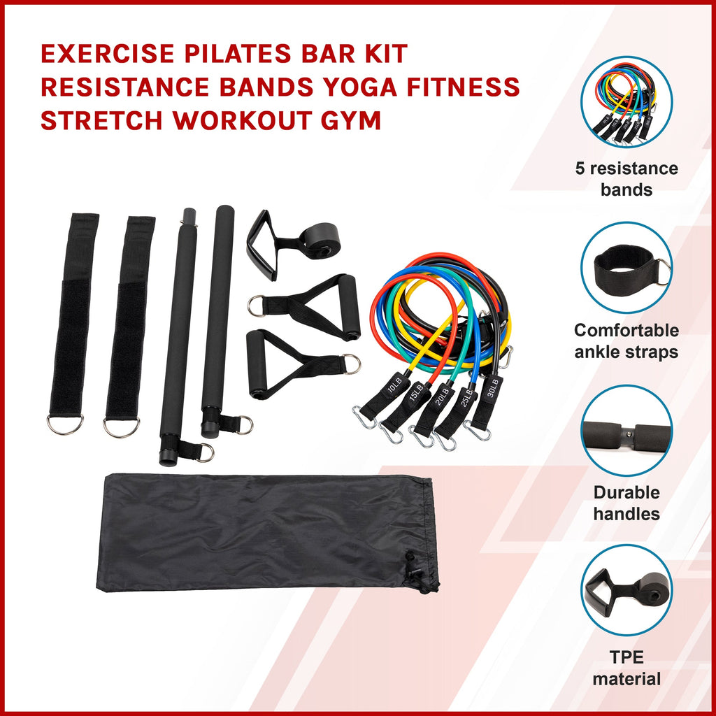 Exercise Pilates Bar Kit Resistance Bands Yoga Fitness Stretch Workout Gym Resistance Trainers