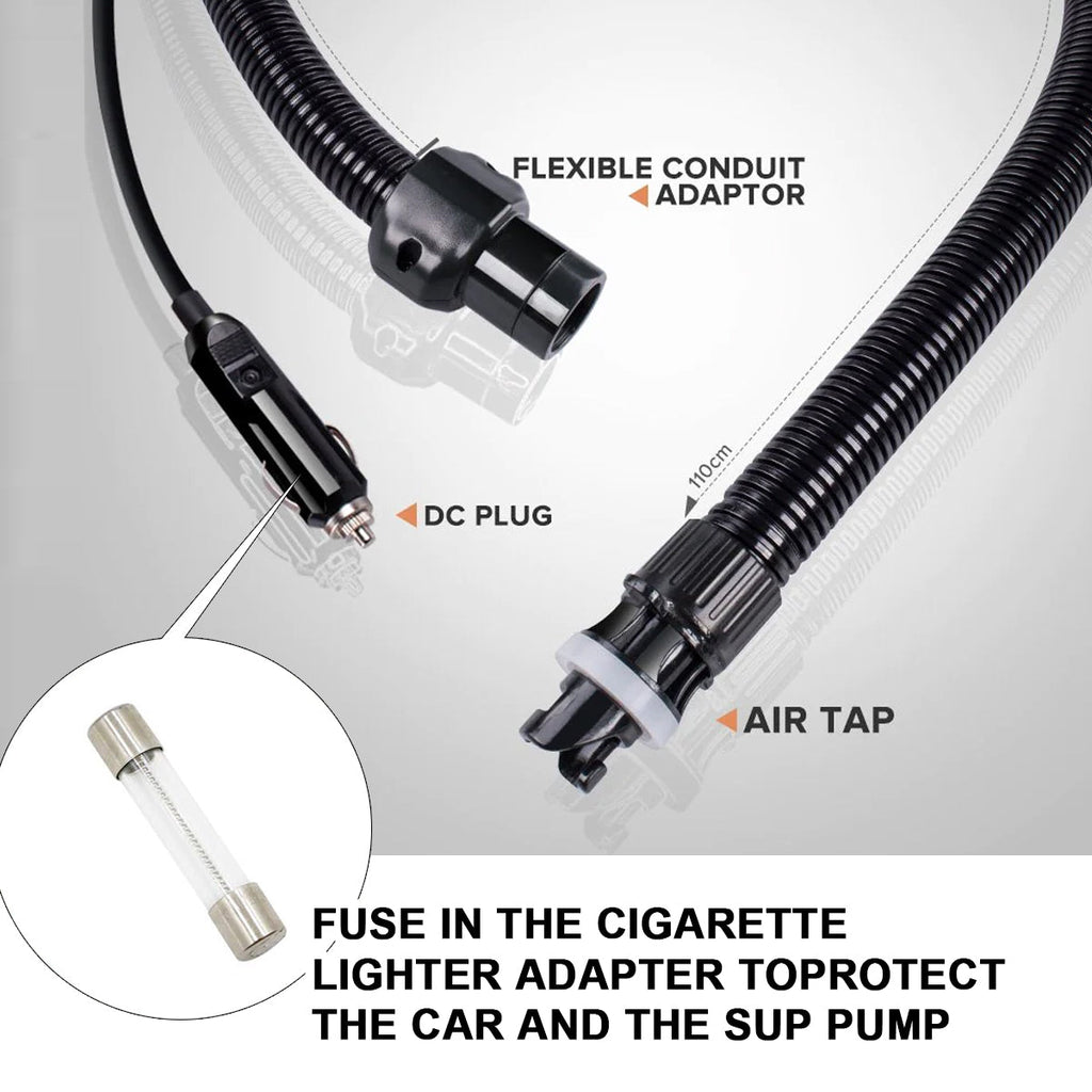 Easy To Use: This High Pressure Sups Air Pump Features A Design That Is Convenient And Practical. You Can Easily Carry It With You And Use It Anywhere With The 1M Flexible Air Hose And The 3 Meter Dc Car Power Cord.