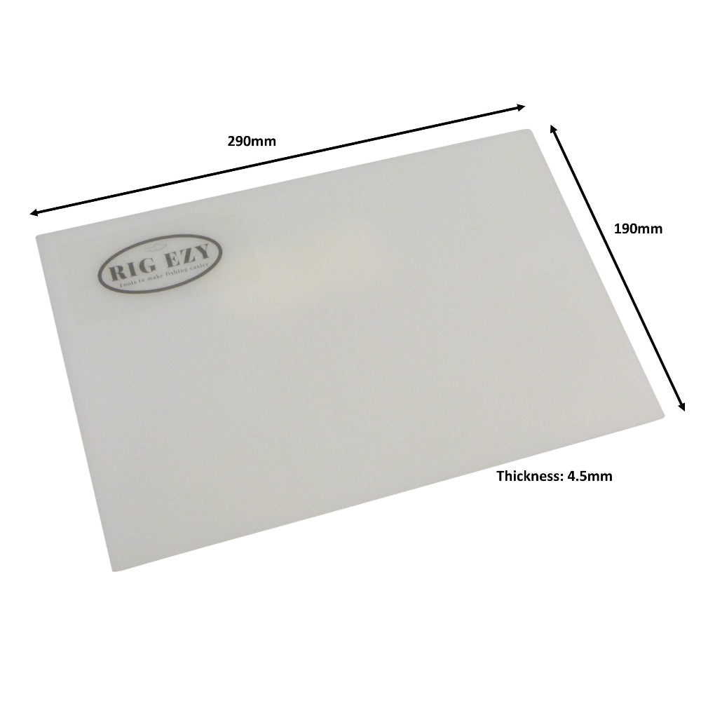 Rig Ezy Bait Boards Are A Compact 290Mm Long X 190Mm Wide With A Thickness Of 4.5Mm And A Straight Edge Cut. A Convenient Size To Carry In A Pack On The Yak Or For Cutting Up Snacks They Are Made From Food Grade Hdpe (High Density Polyethylene). These Boards Are Strong And Lightweight With Excellent Chemical Weather And Impact Resistance Characteristics. Hdpe Is Also Easily Recyclable.