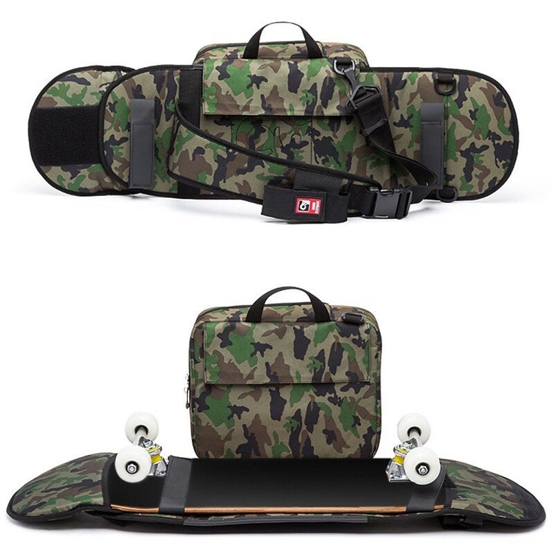 Multi Functional Skateboard Longboard Carry Bag Sling Green Camouflage Skateboard Bags