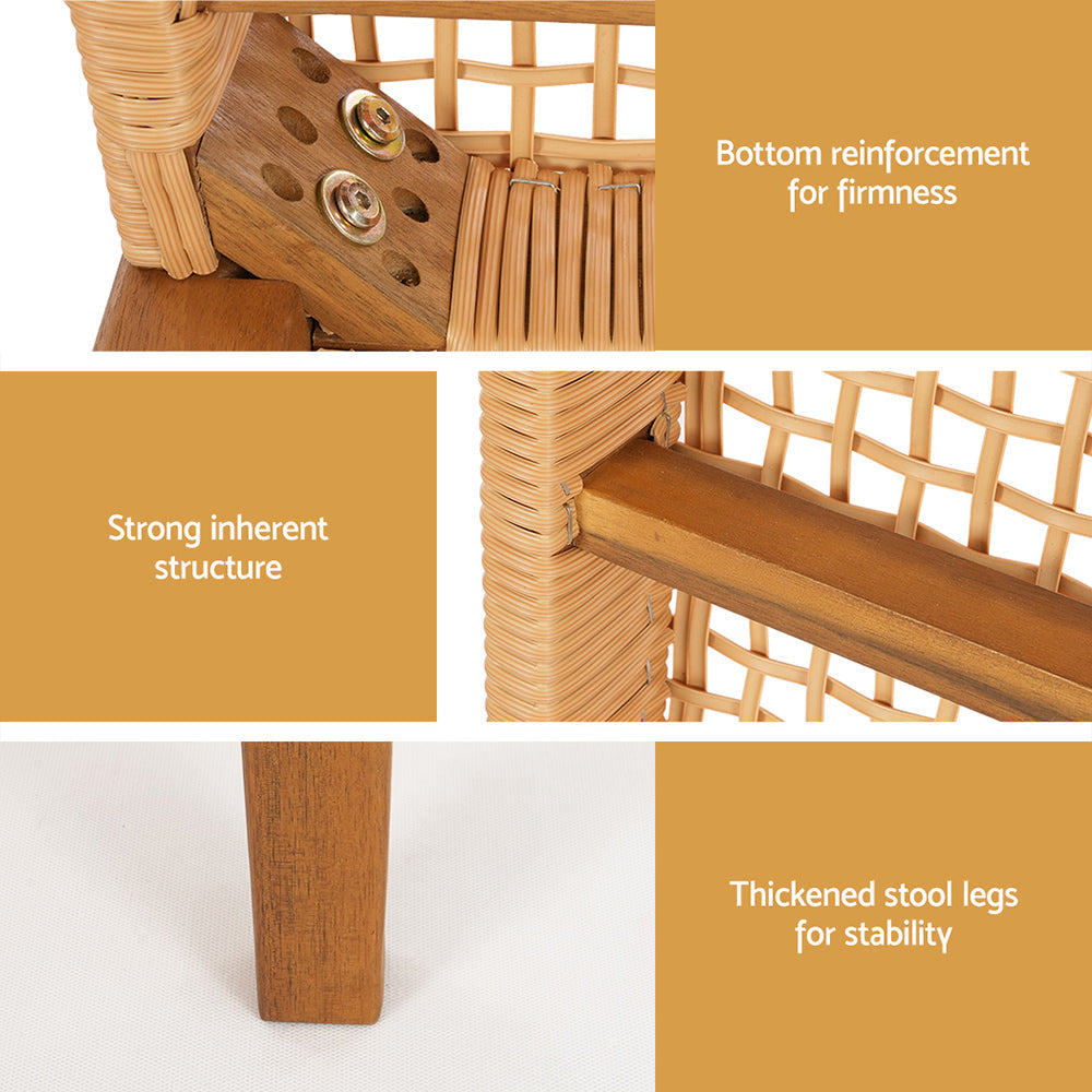 Enjoy A Peaceful Afternoon In The Backyard With A Gardeon 2-Seater Garden Bench. With A Smooth Acacia Wood Surface And Pe Wicker Seat This Timeless Garden Bench Is The Perfect Addition To Your Outdoor Dining Area. The Chair Is Strong Sturdy And Weather Resistant So You Know It Will Be There Come Rain Or Shine. The Pe Rattan Seat Keeps The Bench Well-Ventilated And Is Simple To Clean. With A Reinforced Bottom And Thickened Base Legs The Bench Has A Weight Capacity Of 240Kg. Use Outdoors For A Classic Exterior Look Or Use Inside For A Rustic Touch To Your Decor. What Better Way To Spend Spring Than With Company Outdoors On Your Gardeon 2-Seater Garden Bench.