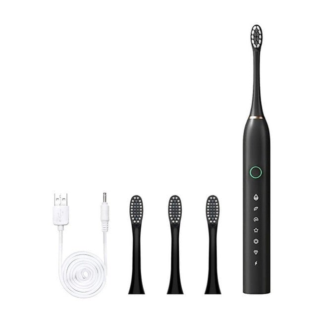 - 1x Toothbrush Body - 4x Toothbrush heads - 1x USB Charging CableOUR GUARANTEE: