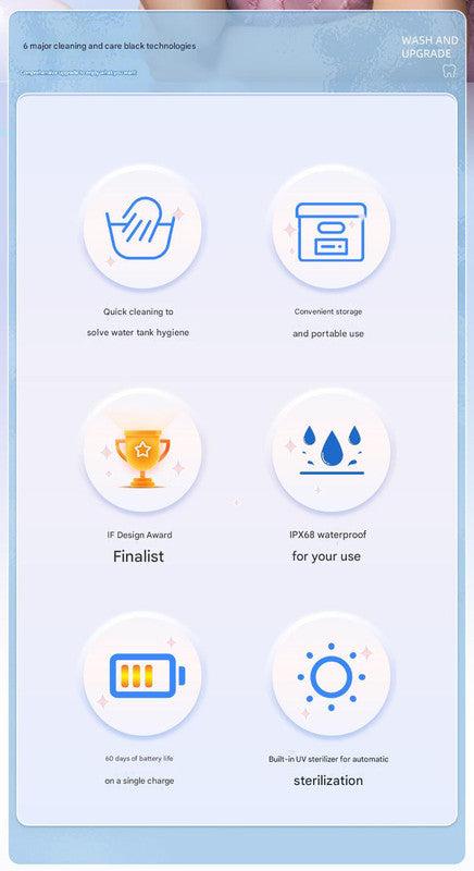This Product Contains A Lithium Battery. Please Do Not Aim The Water Jet Directly Into Eyes Ears Or Other Sensitive Areas. The Uv Sterilization Light Is Internal; Avoid Direct Eye Exposure If The Unit Is Disassembled. For First-Time Users It Is Recommended To Start With The Gentle Mode. This Device Is An Adjunct To Not A Replacement For Regular Brushing And Professional Dental Cleanings. Clean The Device And Water Tank Regularly. Ensure The Magnetic Charging Contacts Are Dry Before Charging. Use Only Clean Water In The Reservoir; Do Not Use Mouthwash Or Other Solutions Unless Specified By The Manufacturer As Safe.