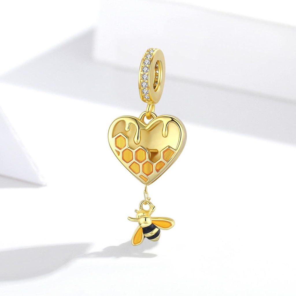 925 Sterling Silver Heart Honeycomb Bee Pendant For Bracelet Or Necklace Charms & Pendants