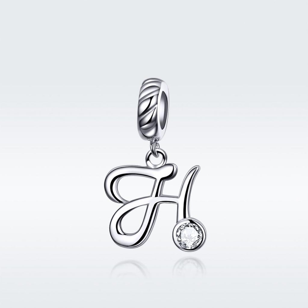 • 1 X 925 Sterling Silver Letter Pendant For Diy Bracelet Or Necklace Style - H