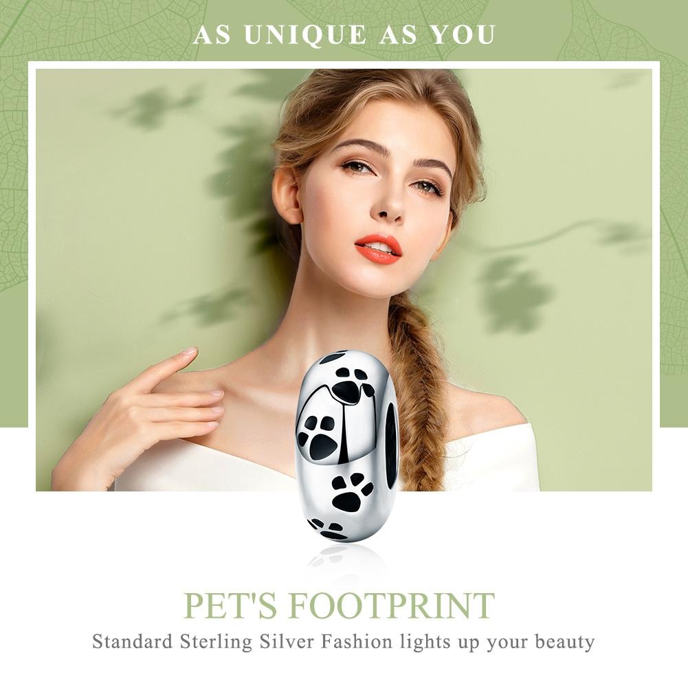 925 Sterling Silver Pet Imprint Diamond Bead Bracelet Accessory Charms & Pendants