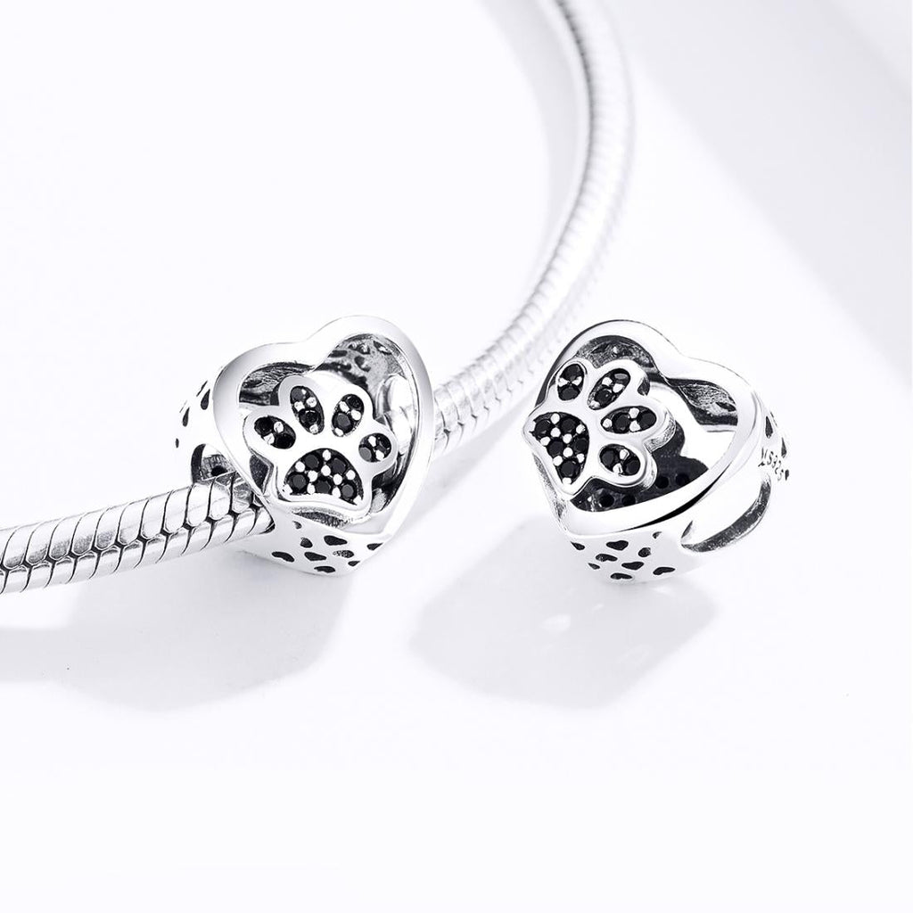 925 Sterling Silver Pet Paw Print Beaded Bracelet Charms & Pendants