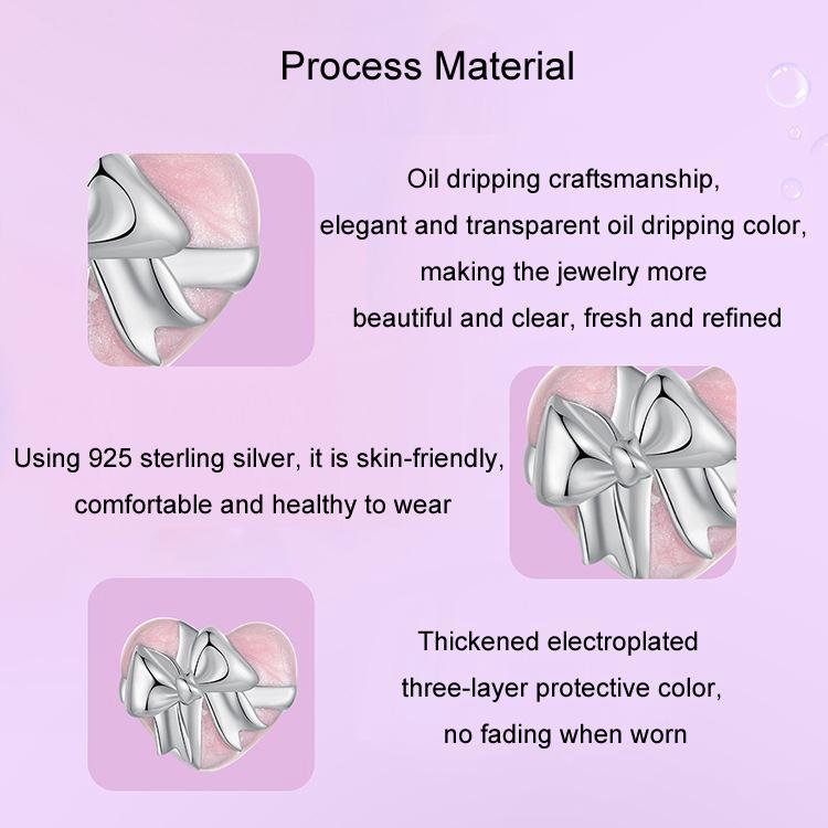 925 Sterling Silver Platinum Heart Bow Beads Gift Box Charms & Pendants