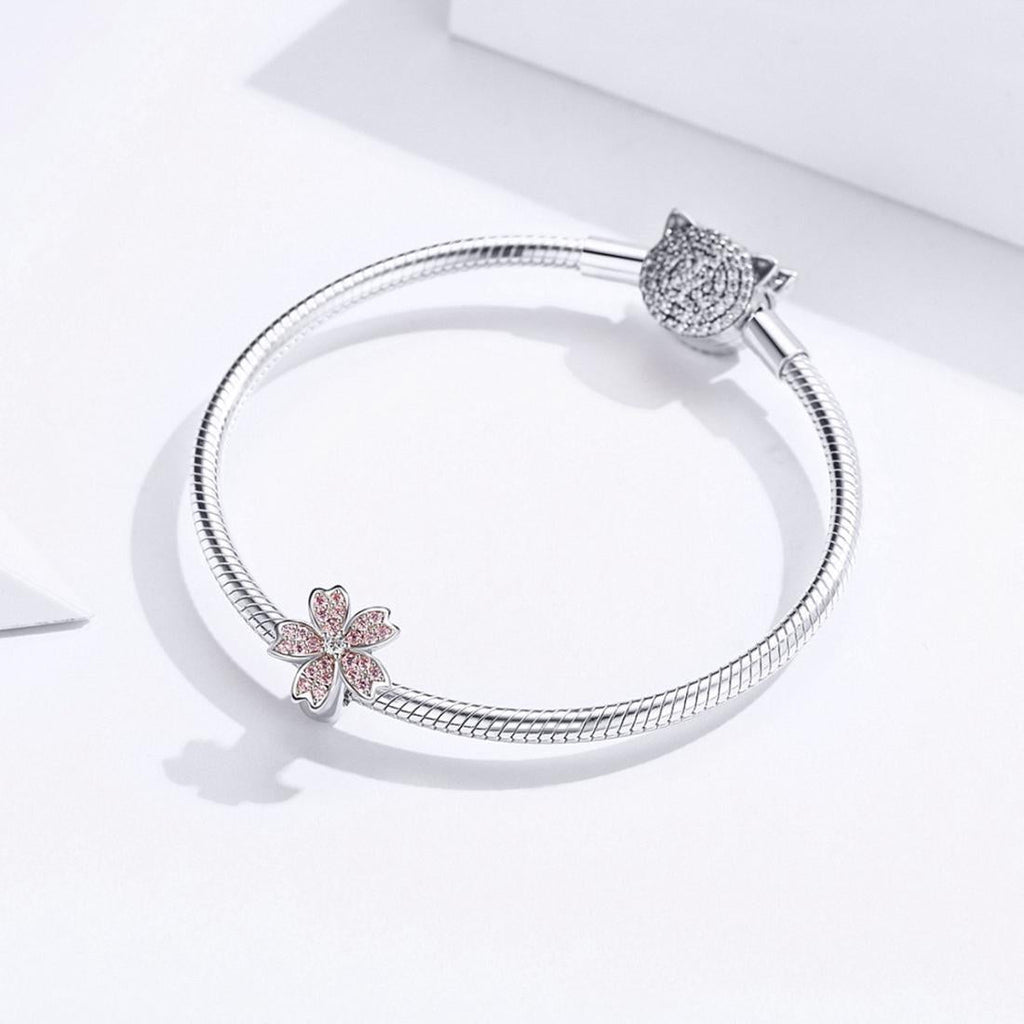 925 Sterling Silver Platinum Plated Pink Flower Beads For Diy Bracelets Charms & Pendants